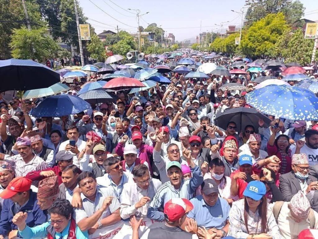 नेपाल शिक्षक महासंघको आह्वानमा देशभरका शिक्षकहरु काठमाडौंमा जम्मा भएर चैत २० देखि आन्दोलन भइरहेको थियो। उनिहरुले माइतिघरदेखि नयाँ बानेश्वरसम्म दैनिक ३ घण्टा आन्दोलन गरिरहेका थिए।
