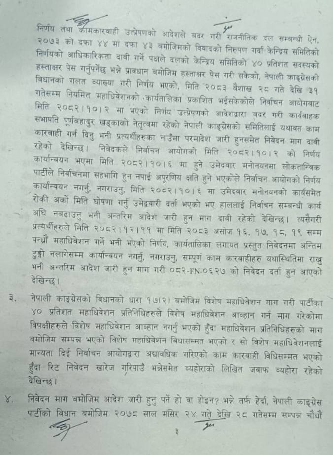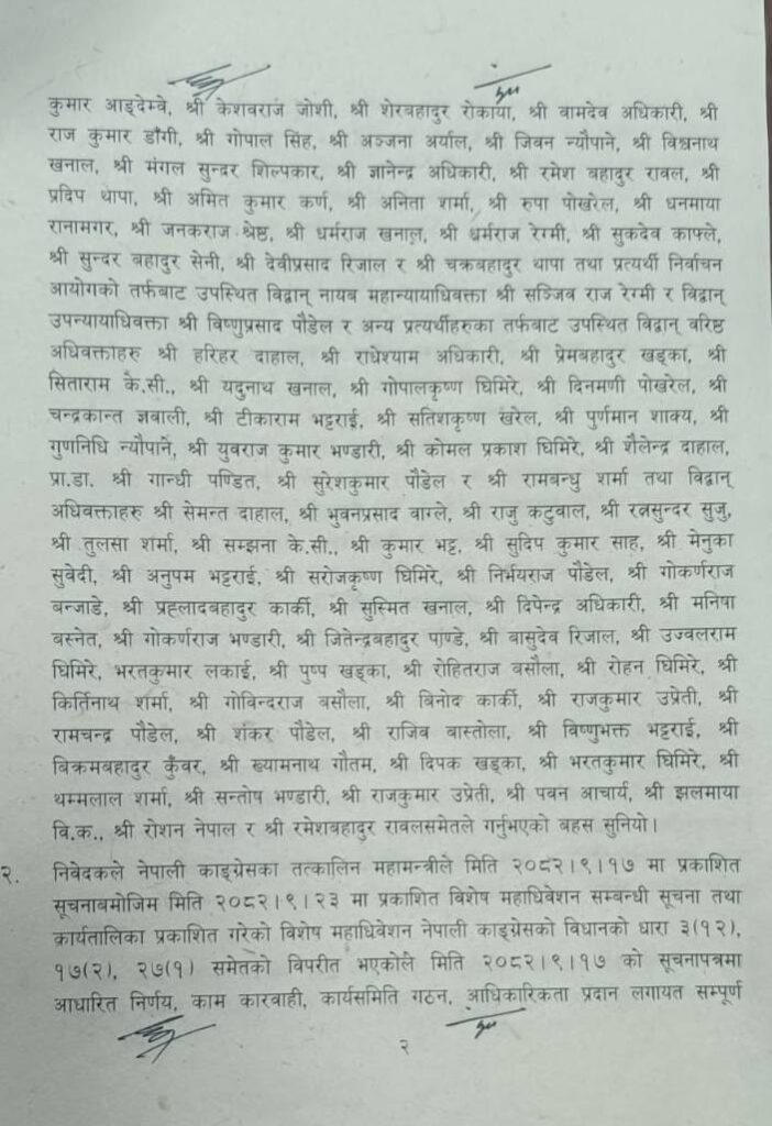 थापा नेतृत्वको कांग्रेसलाई आधिकारिता दिएपछि अब शेरबहादुर देउवा पक्ष के गर्छ ? चासोपूर्वक हेरिएको छ। कांग्रेसमै रहलान् की अर्को पार्टी खोल्लान? गगन थापा समूहले विशेष महाधिवेशन गरेर नयाँ नेतृत्व चयन गरेपछि देउवा समूह त्यसलाई अवैध भन्दै सर्वोच्च अदालत पुगेको थियो। तर प्रारम्भिक सुनुवाईमा अन्तरिम आदेश जारी भएन।
