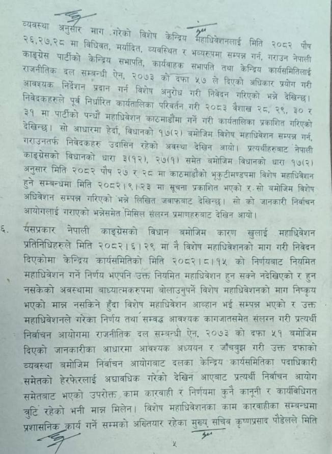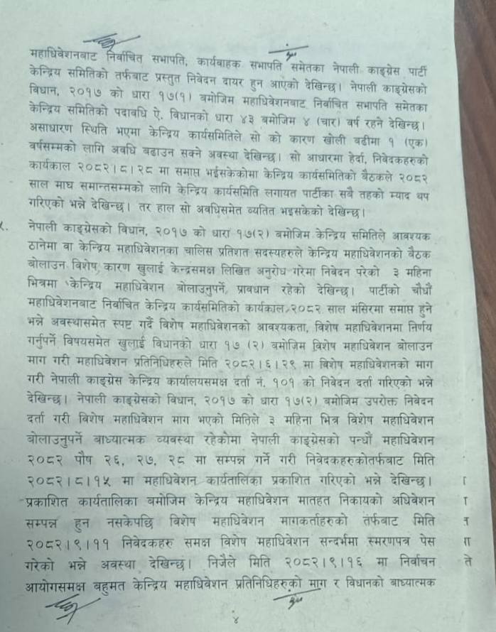 ४० प्रतिशत महाधिवेशन प्रतिनिधिले विशेष महाधिवेशन माग गरेपनि देउवा नेतृत्वको केन्द्रीय समितीले विशेष महाधिवेशन आह्वान गरेको थिएनँ। त्यसपछि केन्द्रीय समितीले निर्णय नगरेपनि माग नै पर्याप्त हुने भन्दै गगन समूहले विशेष महाधिवेशन गरेको थियो।