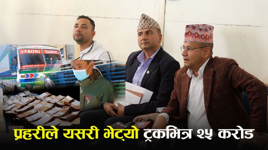 प्रहरीले ट्रकबाट करिब १३ लाख युरो र ३ लाख अमेरिकी डलर गरी २५ करोड १९ लाख २४ हजार ९ सय ५० रुपैयाँ बराबरको विदेशी मुद्रा बरामद गरेको छ।
